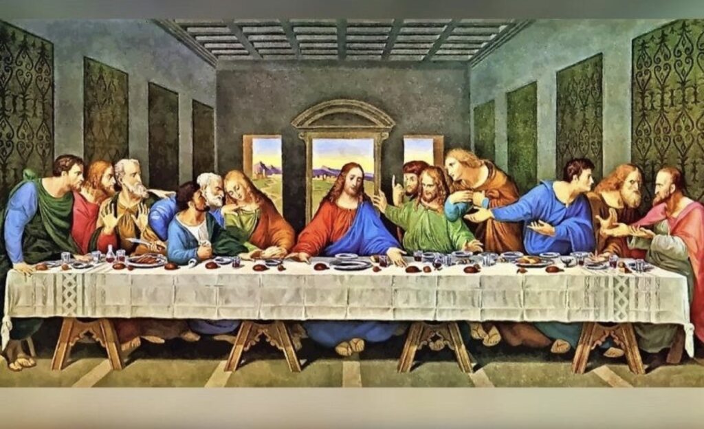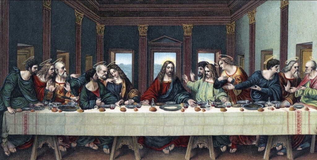 During the Last Supper, Jesus shared bread and wine with His disciples, symbolizing unity, love, and self-giving.